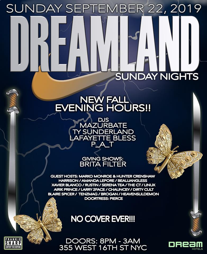 SUNDAY (9.22.2019): Frankie Sharp’s prime time DREAMLAND premieres at the Dream Hotel’s PHD, featuring Brita Filter; ICONIC’s 3rd season kicks off at Icon; the final BBQ of the season at Metro; Vivica Galactica presents a new drag & burlesque showcase at WILD Project; a benefit for QDEP at The Rosemont; FiFi DuBois hosts a MissContinueContinue reading “Sunday (9.22.2019)”