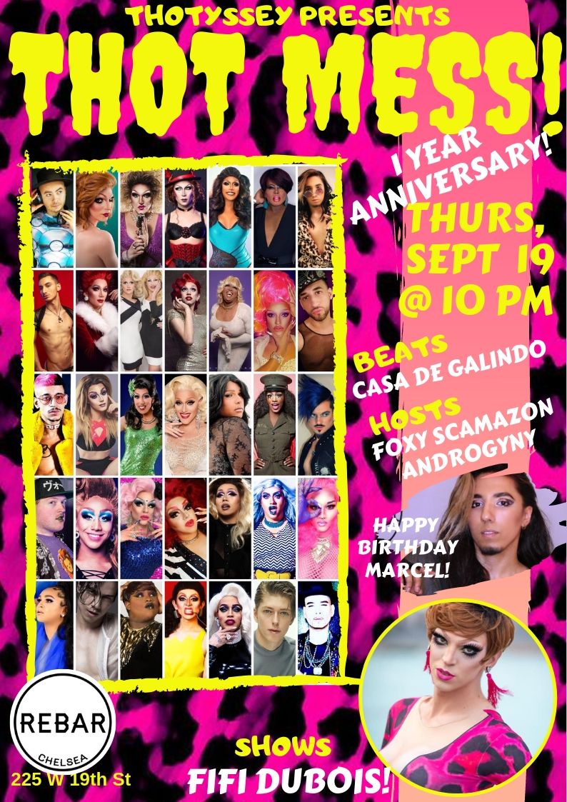 THURSDAY (9.19.2019): At ReBar, Thotyssey’s flagship party Thot Mess has it’s first anniversary featuring performances by FiFi DuBois, Androgyny, Marcel & Foxy Scamazon; Lady Bunny and several top queens perform for a Trinity Place Center benefit at Industry, followed by QUEEN; Mattchine at Julius’; Phallic Cvnt & Miz Jade bring Deadly Wrath to 3DB; andContinueContinue reading “Thursday (9.19.2019)”