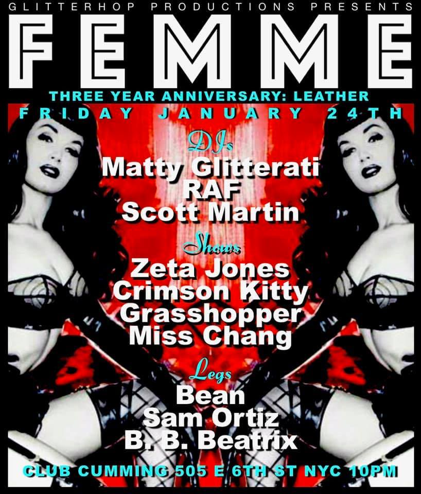 FRIDAY (1.24.2020): The 3rd anniversary of Matty Glitterati’s FEMME at Club Cumming, with Crimson Kitty & Zeta Jones; Sherry Vine joins Jackie Beat onstage at 3 Dollar Bill, then hosts Wendy Stuart Kaplan’s birthday bash at Bedlam; later at 3 Dollar Bill, Ty Sunderland presents Love Prism; Ladyfag’s 12:12 at Open House; Balls Deep DiscoContinueContinue reading “Friday (1.24.2020)”