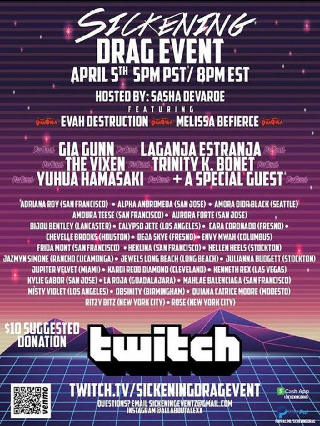 FRIDAY (4.3.2020) Your daily guide to online nightlife-based programming during the coronavirus quarantine. LIVE WEBCASTS FACEBOOK: Marti Gould Cummings reads to kids (here) (3pm); Maries Crisis Live Piano Bar (here) (4:30pm); Aria Derci & Pussy Willow (here) (6:30pm); The Paisley Fields (here) (7pm); Sutton Lee Seymour (here) (7pm); Drag Race viewing party with Whendy Whaxwood (here) (7pm);ContinueContinue reading “Friday (4.3.2020)”