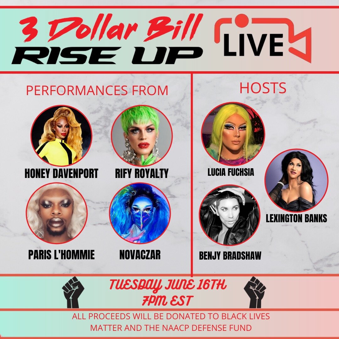 TUESDAY (6.16.2020) Your daily guide to online nightlife-based programming during the coronavirus quarantine. (EST) LIVESTREAMS FACEBOOK: 3 Dollar Bill benefit for BLM & NAACP Defense Fund feat. Lucia Fuchsia, Lexington Banks, Benjy Bradshaw, Honey Davenport, Rify Royalty, Paris L’Hommie & Novaczar (here) (7pm); Amber Martin (here) (7pm); Dreama Belle (here) (7pm); Novaczar (here) (8pm); CacophonyContinueContinue reading “Tuesday (6.16.2020)”