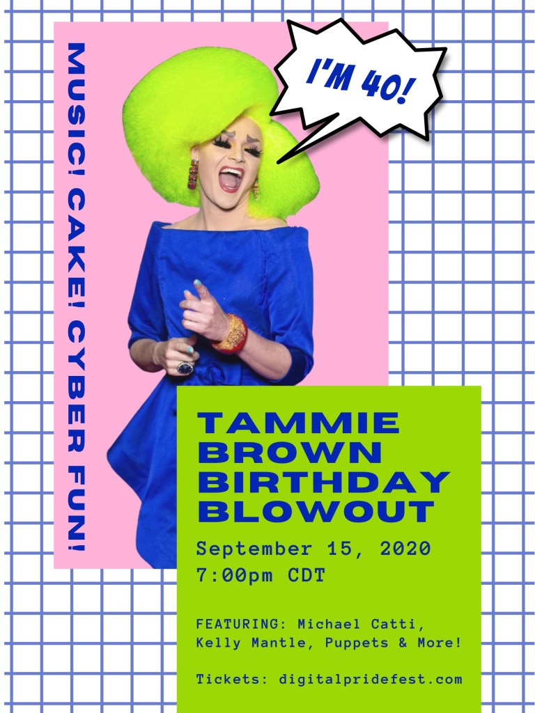 That’s “The Tammie Brown Birthday Blowout” on Tuesday, September 15th (8pm EDT), featuring your prior mentioned musical collaborator Michael Catti and Drag Race Season 6’s Kelly Mantle.