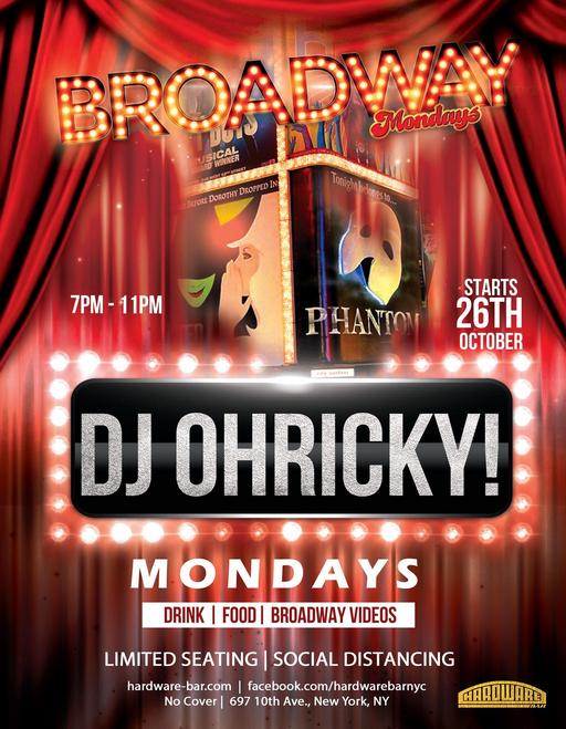 But two other venues where you’ve been based for a long time, sister bars Pieces in the West Village and Hardware in Hell’s Kitchen, have weathered the storm and are now taking 25% capacity sit-down dinner crowds! You returned to the Hardware booth this past week for Broadway Mondays, a long running show that’s usually hosted by a queen, but is currently solo OhRicky and the best of your Broadway clips! How did it go?