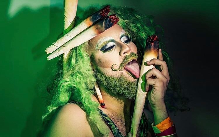 New York body painting extraordinaire Ish Peralta got into his ganja queen gear several times during lockdown, gracing us with funny / weird stoner-approved shows in revues that often included his girls Erika Klash and Crimson Kitty.