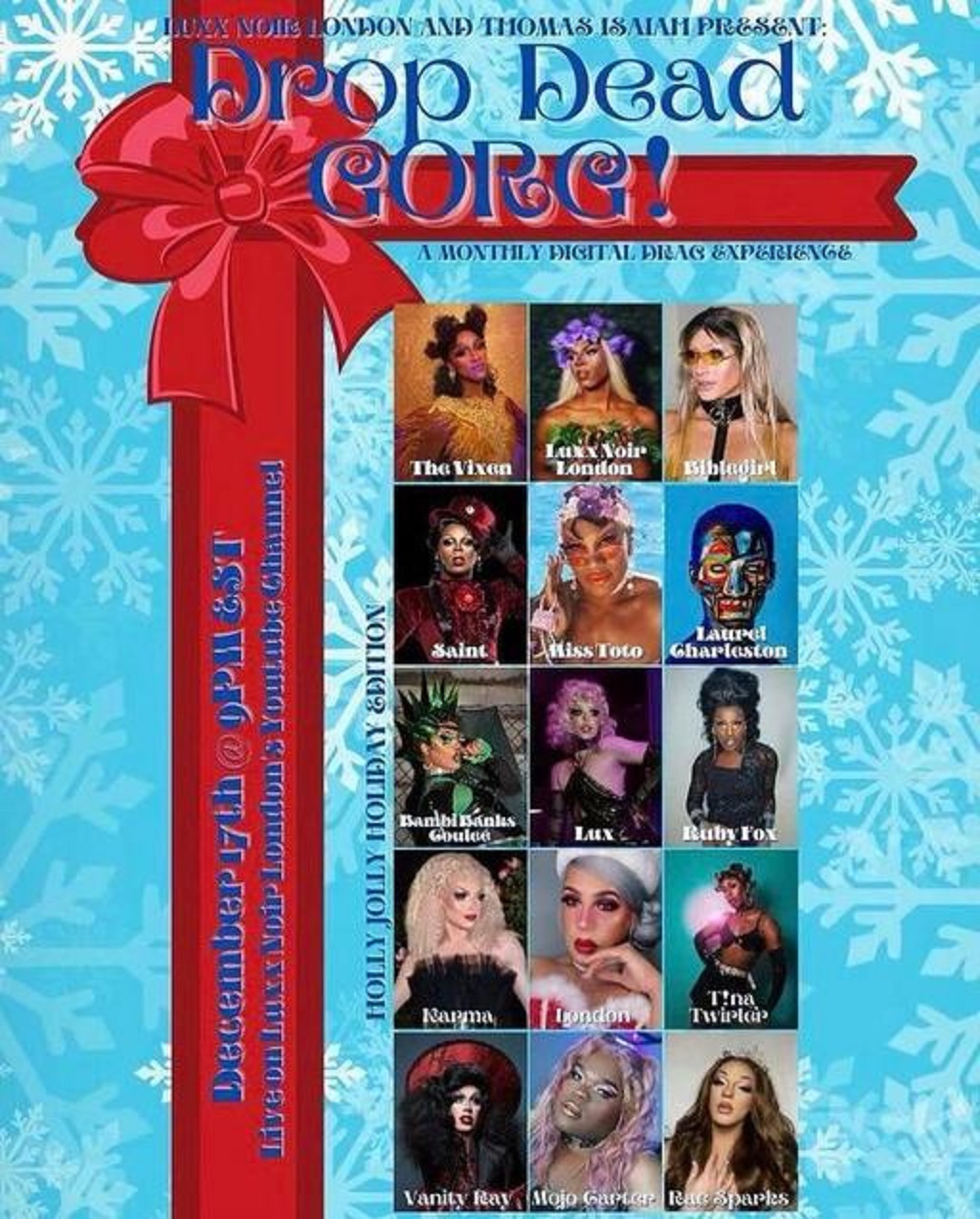 WEDNESDAY (12.16.2020) Your daily guide to online nightlife-based programming (and some live socially distanced events) during the coronavirus quarantine. (EST) LIVESTREAMS FACEBOOK: Wendy Stuart Kaplan & Tym Moss (here) (2:30pm)Angela Di Carlo (here) (5pm);Sparkle Monster (here) (7:30pm);Evita Loca (here) (8pm); “Cheer New York: Deck the Heels” hosted by Hibiscus & Catrina Lovelace feat. Cissy Walken & moreContinueContinue reading “Wednesday (12.16.2020)”