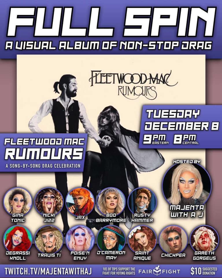 TUESDAY (12.15.2020) Your daily guide to online nightlife-based programming and some socially distanced live shows during the coronavirus quarantine. (EST) LIVESTREAMS FACEBOOK: Cacophony Daniels (here) (8pm);Adele Computer (here) (8pm);AndrogyNY, Jacklynn Hyde & Brenda Dharling (here) (9pm)INSTAGRAM: Cooking with Chocolatina & Lavinia Draper (here) (6pm);Dreama Belle & Ginger Ladd (here) (6pm);Selma Nilla (here) (8pm);Zeta Jones (here)ContinueContinue reading “Tuesday (12.15.2020)”