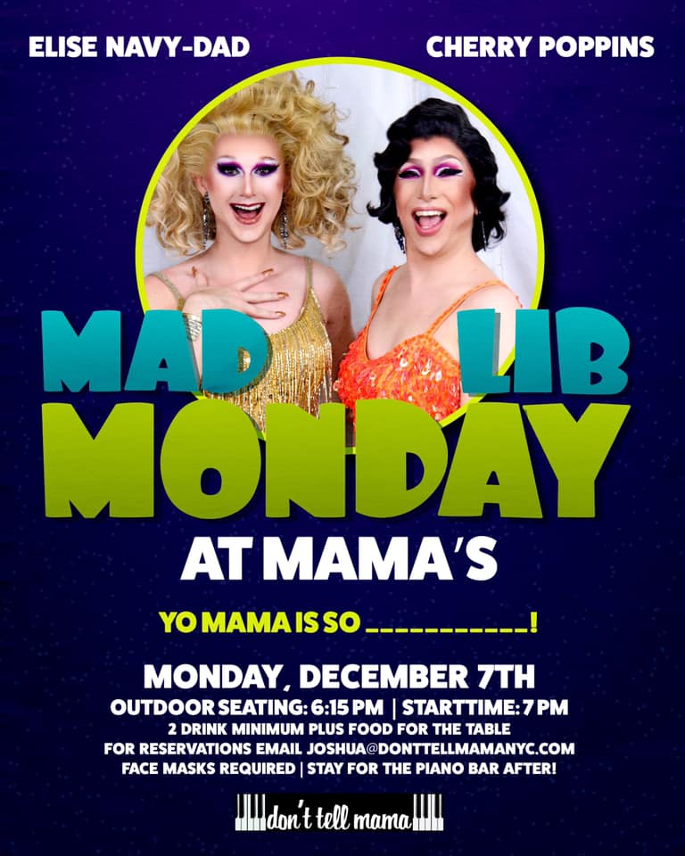 WEDNESDAY (12.2.2020) Your daily guide to online nightlife-based programming (and some live socially distanced events) during the coronavirus quarantine. (EST) LIVESTREAMS FACEBOOK: Wendy Stuart Kaplan & Tym Moss (here) (2:30pm)Angela Di Carlo (here) (5pm);Sparkle Monster (here) (7:30pm);Evita Loca (here) (8pm); Chris Weaver (here) (8:30pm);Cissy Walken with Lyra Vega, Mocha Lite, Novaczar & Spacebabe (here) (9pm);ContinueContinue reading “Wednesday (12.2.2020)”