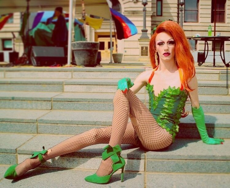 Good observation! I’ve always been a massive Batman fan, and as a kid I watched Batman and Robin more than almost any other film. Specifically, I would replay the absolutely ridiculous Poison Ivy entrance scene at the botanical party. Later in life when I met my friend Jay, we decided to start drag together–and because of our love of the Harley and Ivy relationship, we built our drag off of those characters and their relationship. And from there, Poise’N Envy and Harley Queen were born. Together, Harley and I make up the Worcester City Sirens, based off the Gotham Sirens.