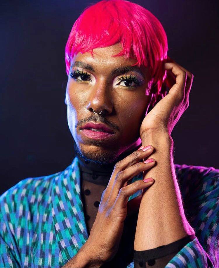 I love to play with androgyny in my everyday style, so I think that just extends to my drag. Most of the videos I’ve made during the pandemic have been clean-shaven, because I’ve been wanting to lean into that hyper-femininity. But I also really love doing looks with facial hair. My favorite thing about drag is that it is personal, and you can be what or whoever you want. I think part of what kept me from doing drag for so long was this idea that I had to be–or present in–a certain way in order to be accepted. I’m really glad I realized that wasn’t true. There are no rules, and that’s why I love it so much. If there were one word to describe what I want to express with my drag, it would be freedom.