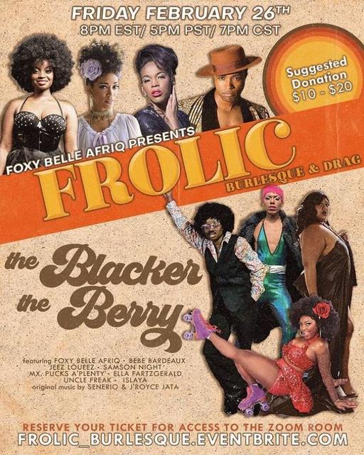Tell us about Frolic Burlesque’s event this Friday, “The Blacker The Berry,” a digital show that has you joining several great POC burlesquers and drag performers!