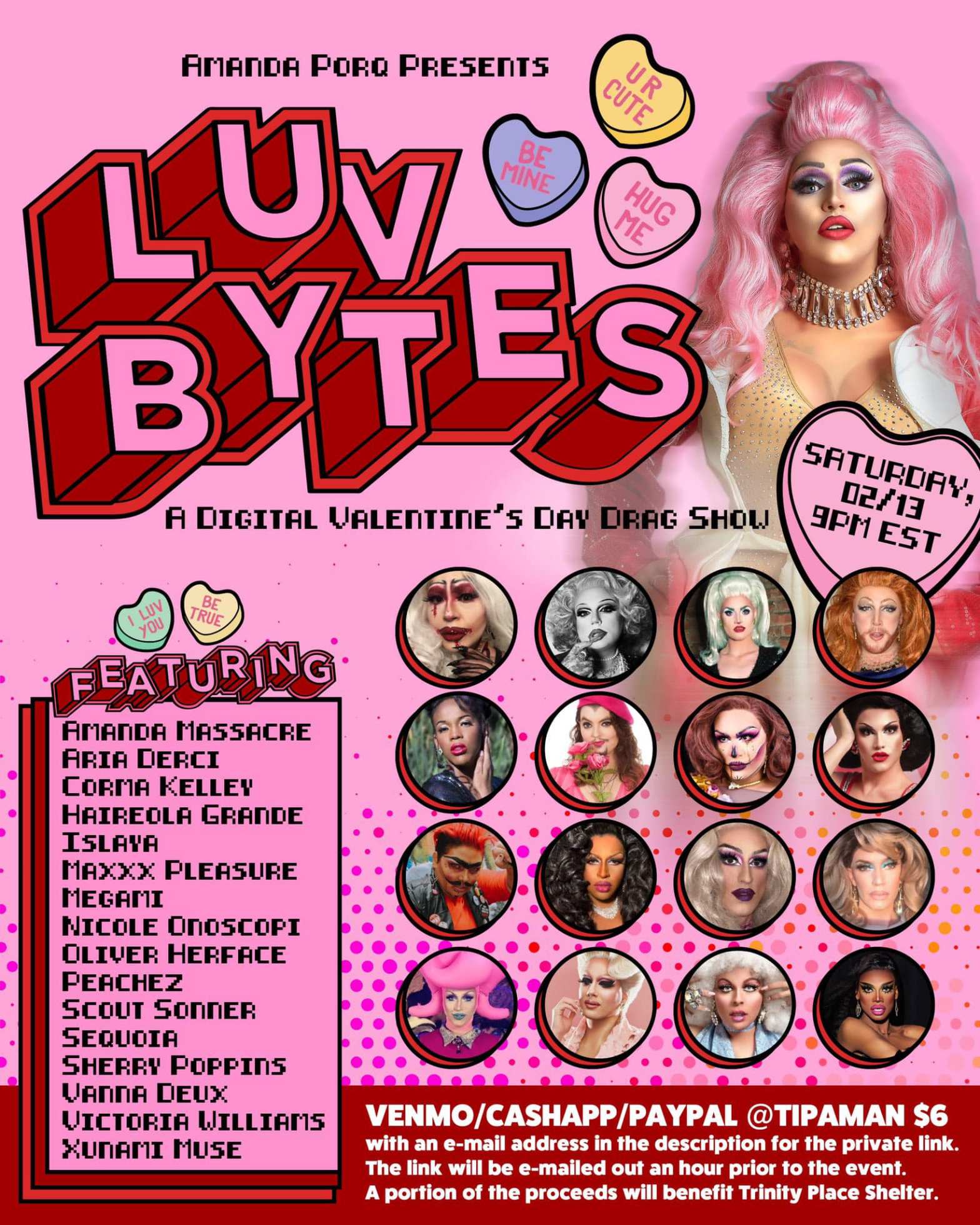 SUNDAY (2.14.2021) Your daily guide to online nightlife-based programming and socially distanced live events during the coronavirus quarantine. (EST) LIVESTREAMS FACEBOOK: Chocolatina (here) (2pm);”Nobody Loves You Like Your Muthers” feat. Aggy Dune, Ambrosia Salad, Darienne Lake, Mrs. Kasha Davis & Pandora Boxx with Mayhem Miller & Utica (here) (5pm);Trivia feat. FiFi DuBois with Shane Cherry, Ginger Ladd & Mister Ladd (here)ContinueContinue reading “Valentines Day (2.14.2021)”