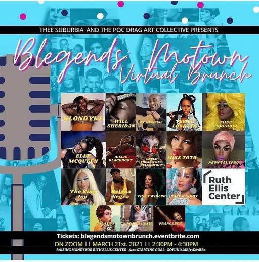 Yes, absolutely… especially when so much creativity and diversity can be found on the digital stage! Well, one place folks can see what you serve digitally this weekend is the “Blegands” Motown Virtual Brunch on Sunday, the first of two large cast Zoom events that day presented by Brooklyn’s Thee Suburbia and The POC Drag Art Collective! The two Blegends virtual showcases (Brunch at 2:30 EST, Cabaret at 7:30 EST) each feature amazing performers from New York, Chicago and beyond, and they benefit the Ruth Ellis Center! Give us a hint about what we might expect!