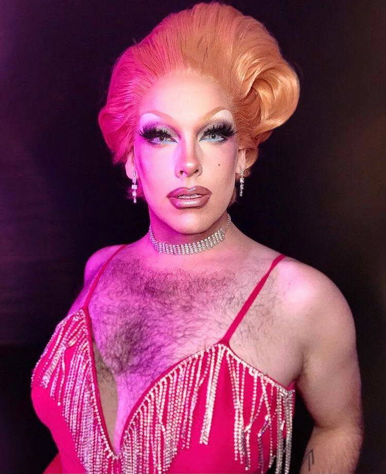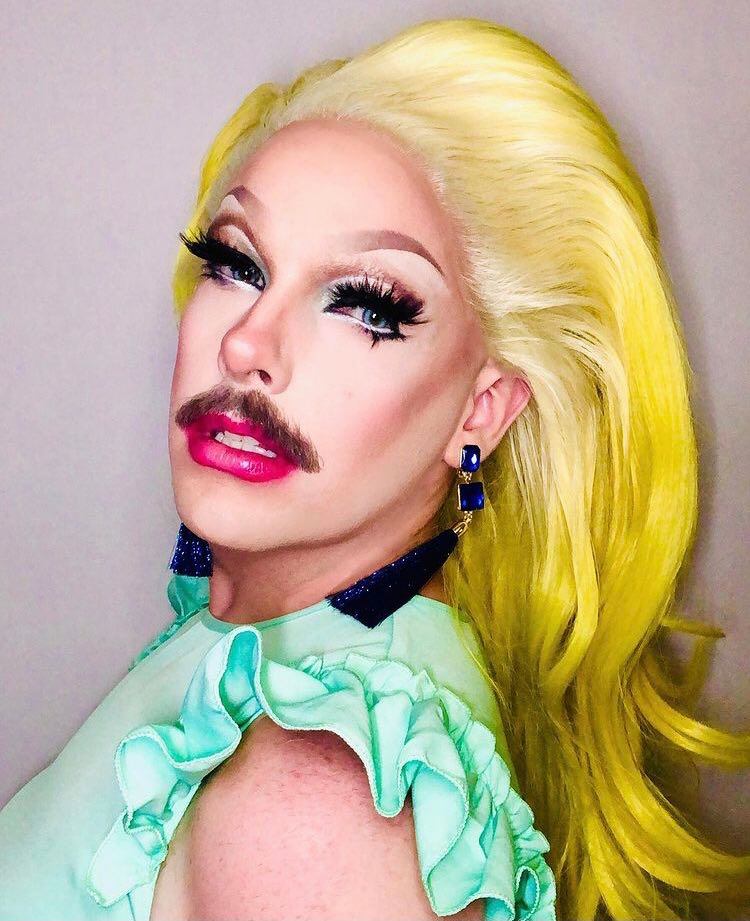One thing that I love about drag in general is how wide the gamut of what is considered “drag” can truly be. Of course I enjoy being gorgeous and feminine, but I’m also an entire ass man… and it’s not a secret either. So in a way, me being a hairy queen is sort of a wink wink nudge nudge, like, we’re all in on the joke. I’ve received some resistance and confusion when it comes to my mustache in particular in the past few years, which can be discouraging at times–but it also made me want to stick to my guns and stay true to myself. I wasn’t gonna change my appearance just because people couldn’t see my talent and beauty past some facial hair, so for a little while there it was kind of a “fuck you” to all of them.