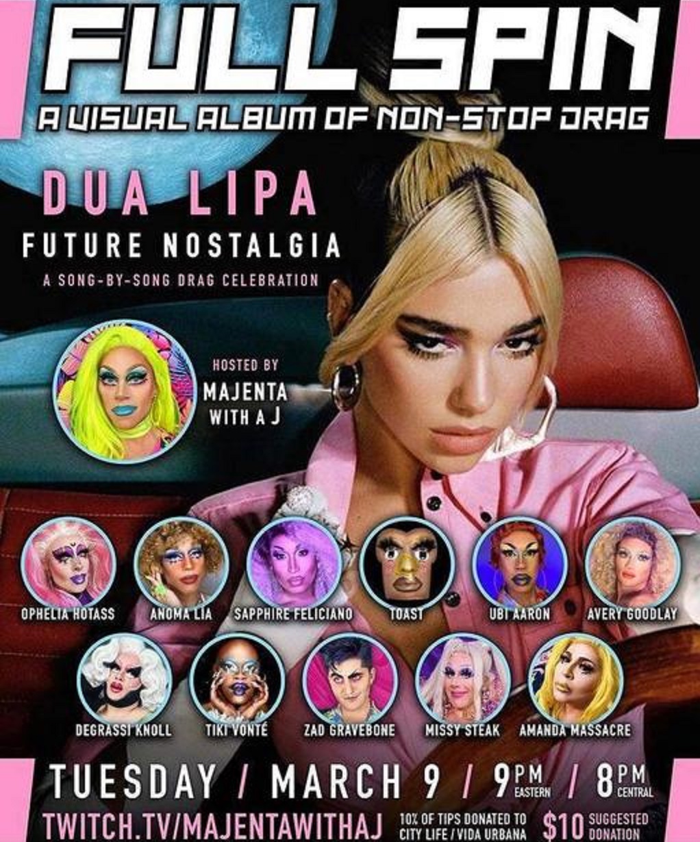 TUESDAY (3.9.2021) Your daily guide to online nightlife-based programming and some socially distanced live shows during the coronavirus quarantine. (EST) LIVESTREAMS FACEBOOK: Cacophony Daniels (here) (8pm); Tom Catt (here) (8:30pm);INSTAGRAM: Cooking feat. Chocolatina & Lavinia Draper (here) (6pm);Ginger Ladd & Mister Ladd (here) (8:30pm);Zeta Jones (here) (10pm) YOUTUBE: Jackie Cox & Michael Hull (here) (7pm)TWITCH:ContinueContinue reading “Tuesday (3.9.2021)”