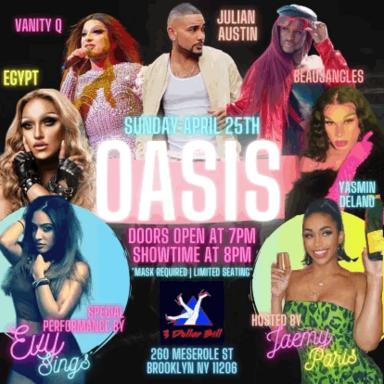 Oasis is an extension of Light Up The Night–similar experience, but different layout–that will be kept at 3DB. Oasis is a showcase highlighting LGBT performing artists in many aspects. My co-Director Julian is releasing his debut music as an artist, which is exciting! This lineup is full of high quality entertainers who live in their art. Me and Julian’s dancers have been working endlessly in the dance studio to get ready for Sunday. Our performances are going to be next level; it’s better than anything we’ve ever done before! We can’t wait to launch this event… this is our first Oasis event!