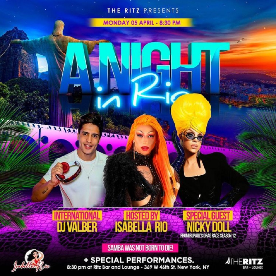 MONDAY (4.5.2021) Your daily guide to online nightlife-based programming and socially distanced live events during the coronavirus quarantine. (EST) HELL’S KITCHEN HARDWARE: “Broadway Mondays” feat. VJ OhRicky with Jacklynn Hyde & Holly Box-Springs (5pm)INDUSTRY: Jackie Cox (8pm)RISE: Trivia feat. Jasmine Rice LaBeija with Lexington Banks (8pm) RITZ: Isabella Rio with Nicky Doll & DJ Valber (8pm) WEST VILLAGE PIECES: Janelle No.ContinueContinue reading “Monday (4.5.2021)”