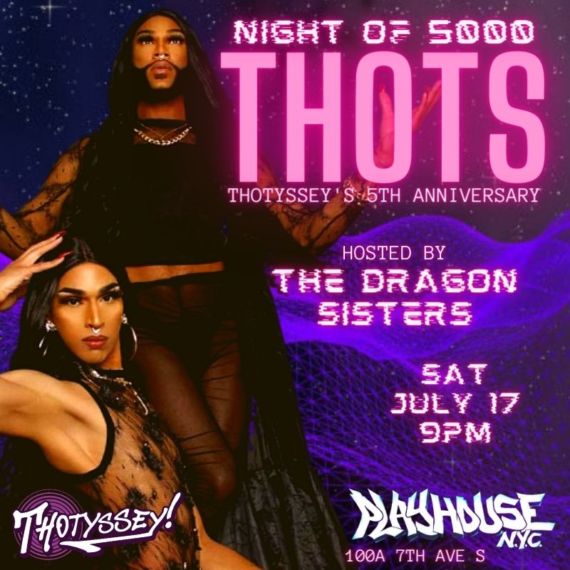 This summer, Thotyssey NYC turns five, so… 1000 Thots just aren’t enough. NIGHT OF 5000 THOTS goes down at our new favorite West Village venue Playhouse Bar on Saturday, July 17th! And after this past year and changed, we are not fucking around this time and this lineup is going to be EPIC. First ofContinueContinue reading “Night of 5000 Thots!”