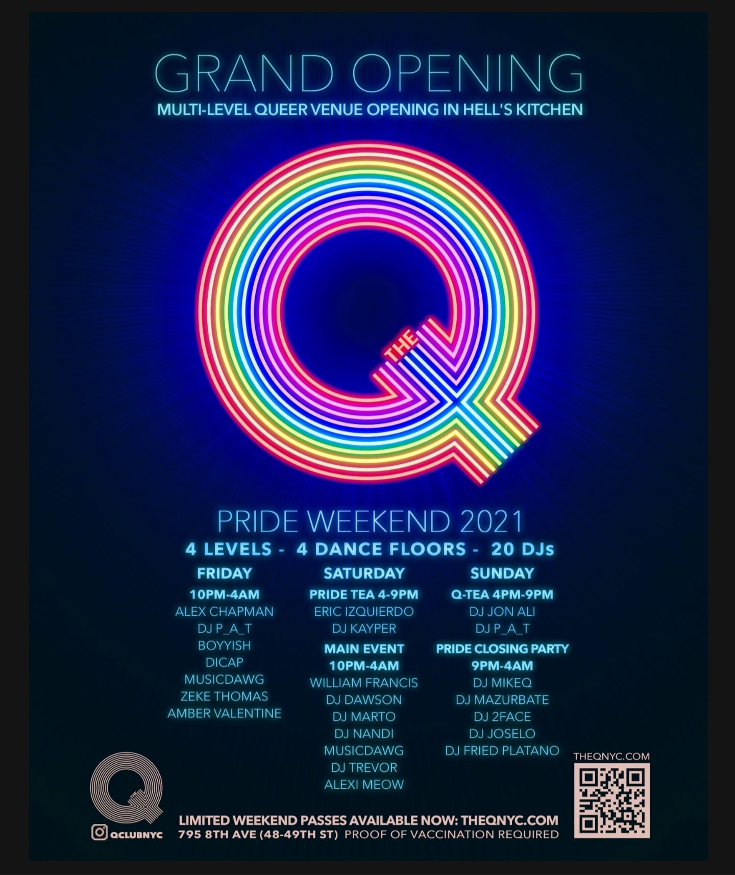 SATURDAY (6.26.2021) Your daily guide to New York and New Jersey nightlife programming. UPTOWN / BRONX B2 HARLEM: Lee Soulja’s Pride drag brunch (1pm)DA CAPO: Brunch with Tiffany Anne Coke-Hart (2:30pm)509 MANHATTAN AVE: “Slayedd Events: Ladies Night” (4pm)TRIAD: Pam Ann: Back in the Air (9:30pm)SUITE: Octavia Anyae (10pm) LOFT 138: “Pride Reset” women’s party (10pm)IDENTITY: TBAContinueContinue reading “Saturday (6.26.2021)”