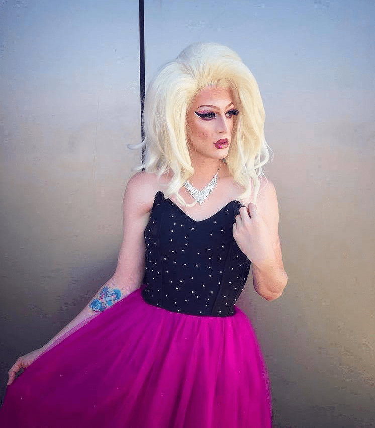 As the show grew nearer and nearer, I realized I had absolutely no clue what I was doing. No idea how to do makeup, no wigs, nothing to wear, no shoes… nothing! So another friend of mine introduced me to my drag mother, Gloria Swansong. She was so kind. She taught me how to do my makeup, let me borrow a dress, a wig, a corset, and shoes. Truly my guardian angel. A few months later I made my official drag debut at “Drag Wars,” and I haven’t looked back since!