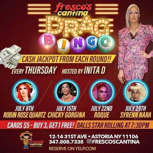 And down the road (July 29th), you’ll be with Inita D for bingo at Fresco’s Cantina! She’s another great queen!