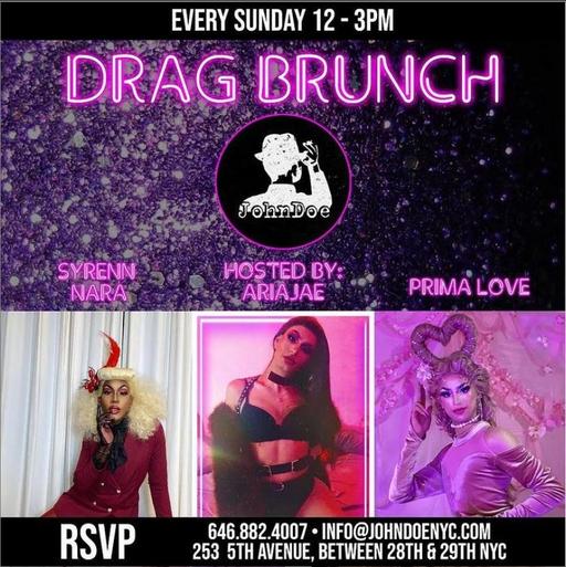 This Sunday, you’ll be at John Doe on Sunday for drag brunch (noon-3pm) with host AriaJae and fellow guest Prima Love!