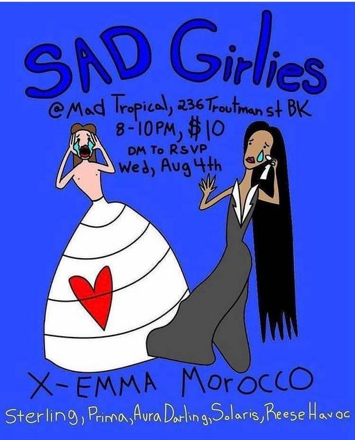 It’s called “Sad Girlies,” an all sad song drag show. I’m super excited to finally be hosting a show! I loved designing the flier and helping other queens out.