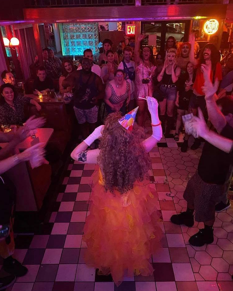 I’ve been performing a bunch with a new house I started with some friends, Silly Brown, Paris L’Hommie, and Sterling Tull: the Haus of Quench. We found a gorgeous bar around the corner from Silly’s apartment called All Night Skate. It’s a cute little 80s-themed pink queer bar with an amazing staff. Our shows are extremely goofy and chaotic. We have some of the best drag artists in Brooklyn; we aren’t trying to prove anything, and we take our nonseriousness seriously.