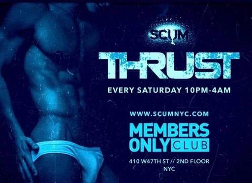 We started Scum three years ago, in March 2018 in Brooklyn. It basically started out of my annoyance with not getting booked; I said, “you know what? If they won’t book me, I’ll build my own [nights].” And it was an uphill battle to get where we are today. We branched into Manhattan in 2019 doing a weekly Monday, and then we branched to every Saturday as well. Today, “Scum”is Brooklyn monthly, “Thrust” is weekly Saturday (Manhattan), and “Gush” is our weekly Monday (Manhattan). We have been going strong again since May, and have been doing really well. We actually return to Brooklyn this Friday.