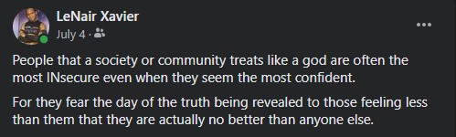 The greatest tragedy to come from these indoctrinations is that because they are indoctrinations, many of us don’t realize we have taken them on as rules. Especially if in one way or another we are underdeveloped, which is why gay males are so often preyed upon when they first come out.