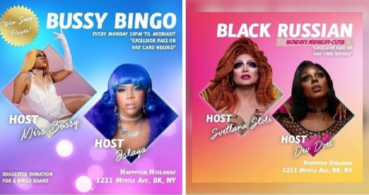 MONDAY (10.11.2021) Your daily guide to New York City nightlife programming. UPTOWN / BRONX SUITE: Standup comedy (8pm)IDENTITY: Bingo feat. Kitty Kaboodlez (9pm)TOOLBOX: Bingo feat. Phoebe Jeebies (9pm) HELL’S KITCHEN HARDWARE: “Broadway Mondays” feat. VJ OhRicky playing musical clips (6pm);Jacklynn Hyde & Holly Box-Springs (9pm)410 W 47TH ST: “SCUM: Gush Mondays” (6pm)THE Q: [1st Floor] Lyra Vega (6pm);[1st Floor] Tim Young (8pm);[3rdContinueContinue reading “Monday (10.11.2021)”