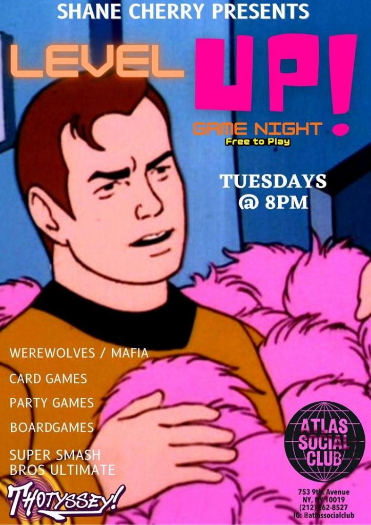 - ATLAS SOCIAL CLUB: “Level Up” geeky name night hosted by Thotyssey & Shane Cherry (8pm)