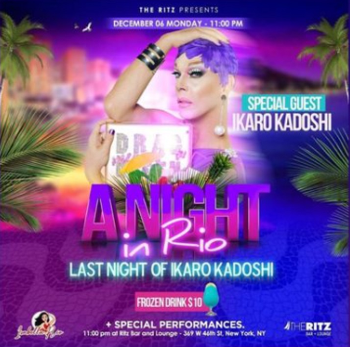 TUESDAY (12.7.2021) Your daily guide to NYC nightlife programming. UPTOWN / BRONX SUITE: Karaoke feat. Victoria Chase (6pm)IDENTITY: “Latin & Urban night” feat. DJ Max Damian (10pm) HELL’S KITCHEN THE Q: [1st Fl] Gloria Swansong with Nani Tsunami (7pm);[3rd Fl] How the Bitch Stole Christmas starring Tina Burner, Tammy Spanx, and Bootsie LeFaris (7pm);Deck the Balls starring Thorgy ThorContinueContinue reading “Tuesday (12.7.2021)”