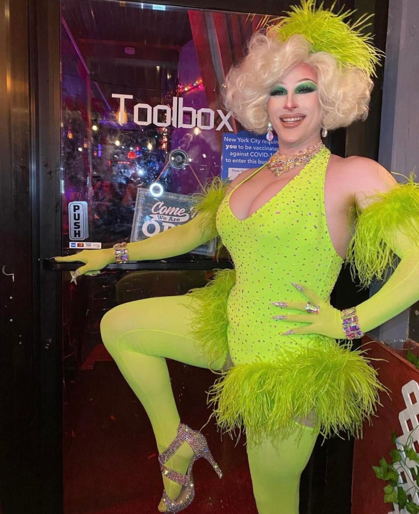 But when I came back last March, I was able to jump back into performing and making outfits for a bunch of girls–even Shequida for “Drag Wars All Stars.” And a fellow drag wars alumni got me my gig at Toolbox.