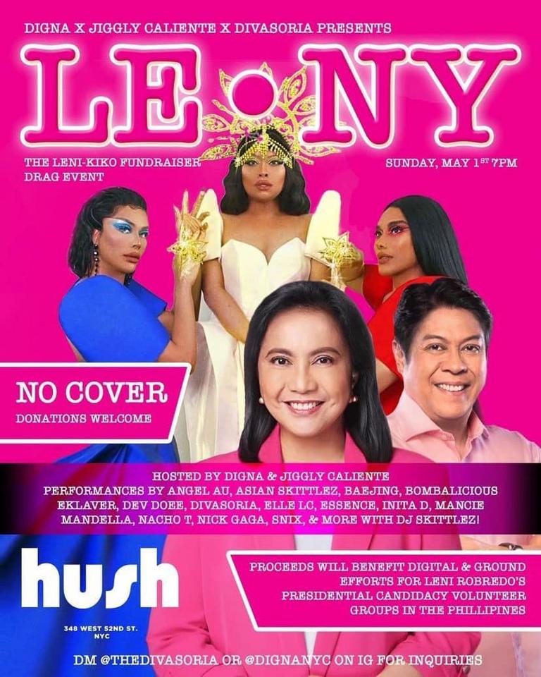 She sounds like precisely what the country needs at this important turning point! So here in New York, Digna, Jiggly Caliente and yourself are going to be presenting a fundraiser for Robredo at HUSH. There’s gonna be a large cast of performers with you all… what more can you tell us about “LE*NY?”