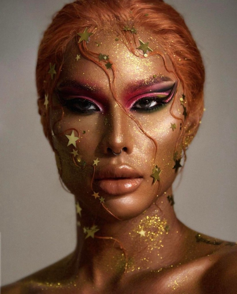 I think I always challenge myself to bring both aspects to clients, regardless of preference. For my clients who like more natural looks, I’ll do soft, flawless complexion… then maybe a graphic artistic wing. Then for my drag clients, I always want them to look more naturally beautiful, like a “fish” supermodel version of themselves. That’s how I keep it authentic to my vision–keeps it interesting, too.