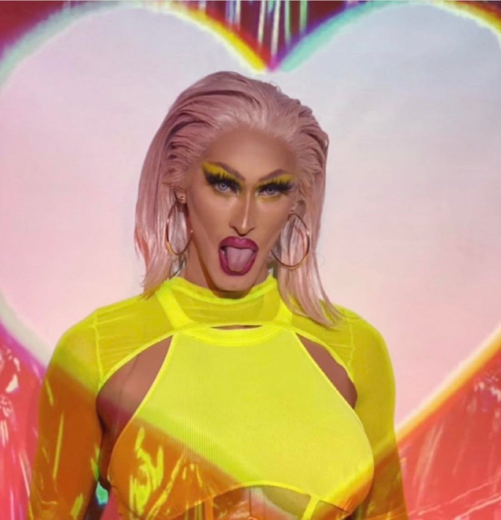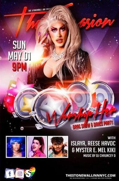 “WorshipHer” sounds weird as a drag name when first hearing it, because we think of of queens as being worshipped and not worshipping… until we see it spelled out, then it makes sense!