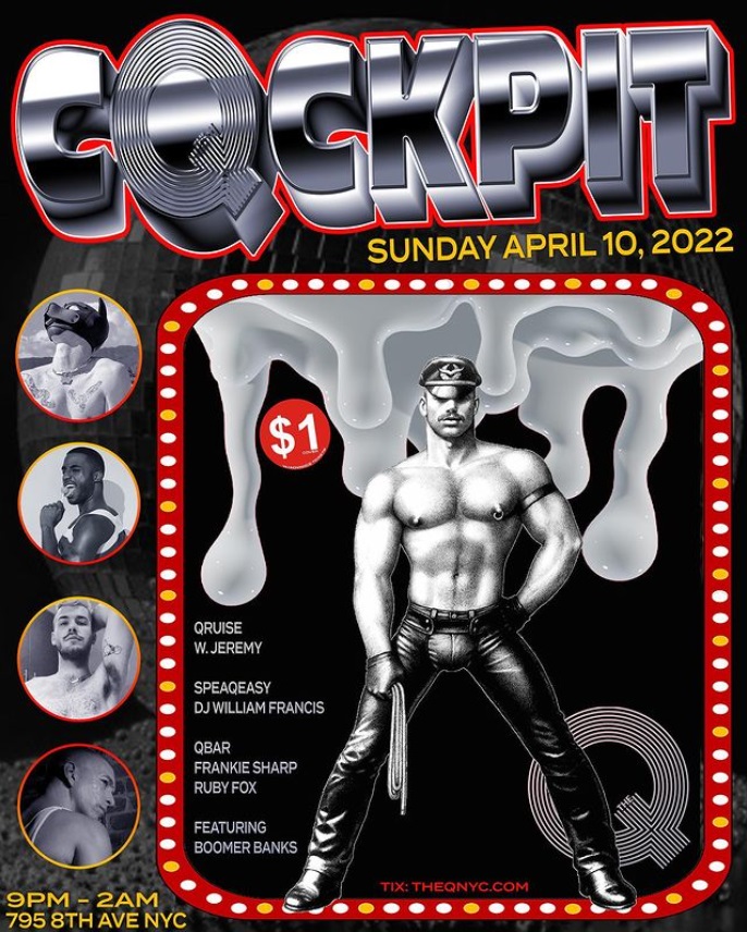 THURSDAY (4.14.2022) Your daily guide to New York queer nightlife events. UPTOWN / BRONX 4WEST LOUNGE: “Trappy Hour” (5pm)BROADWAY BAR @ NORDSTROMS: Bingo feat. Linda Simpson (6pm)OSTERIA LAURA: Karaoke feat. Cicatrix (7pm)TOOLBOX: DJ Nandi (8pm)LAMBDA LOUNGE: Karaoke (8pm)ALIBI: “Thugged Out Thursdays” (10pm)IDENTITY: DJ Poison Ivy (10pm) HELL’S KITCHEN THE Q: [1st Fl] “Cheers Queers” happy hour feat. Aveq MoiContinueContinue reading “Thursday (4.14.2022)”