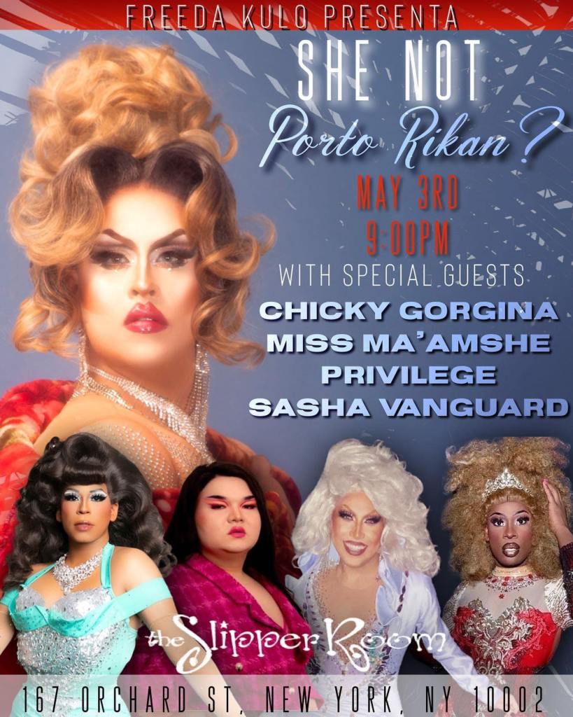 Well said! You do have some fun things coming up. First, there’s “She Not Porto Rikan?” with Freeda Kulo along with Chicky Gorgina, Privilege and Sasha VanGuard.