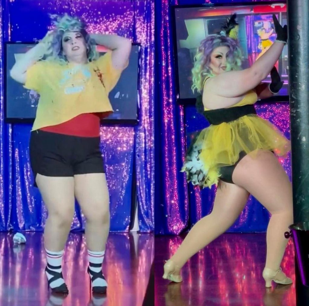 I come from a musical theatre background, and about 18 years of dance experience. I always knew I wanted to perform and express myself, but could never find the right outlet. Plus, my hometown was not very welcome to queer stories and voices. I was first exposed to RuPaul’s Drag Race in high school, and have been hooked ever since. So much so, that friends would cheer me on to do death drops at every party! I did drag one time for fun at my college’s “Drag Night,” and was in love with everything about it.