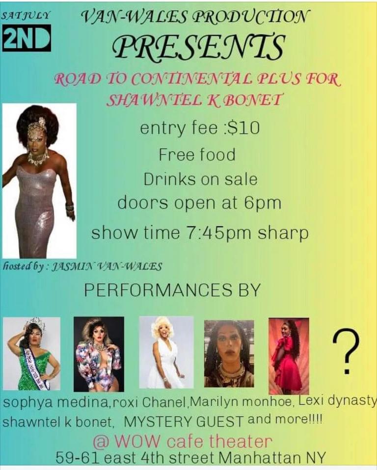 We’re all gonna get a chance to see you turn out for a pageant sister pretty soon: this Saturday at the Wow Cafe for Shawntel K. Bonet’s Continental pageant fundraiser! Jasmin Van Wales is hosting, and many great queens including yourself will be performing!