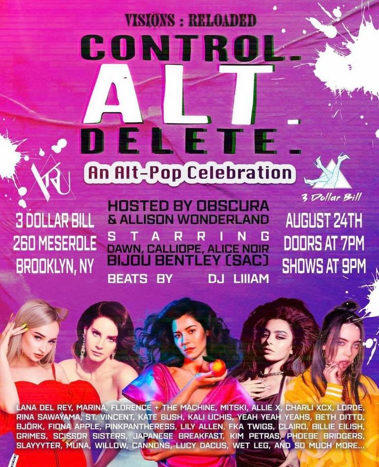 Control Alt Delete is a tribute to our favorite Alt-Pop divas! Artists such as Lana Del Rey, Billie Eilish, Kate Bush and MARINA, and so so many more. I’ll personally be giving Kim Petras and my absolute favorite alt pop diva, Slayyyter!