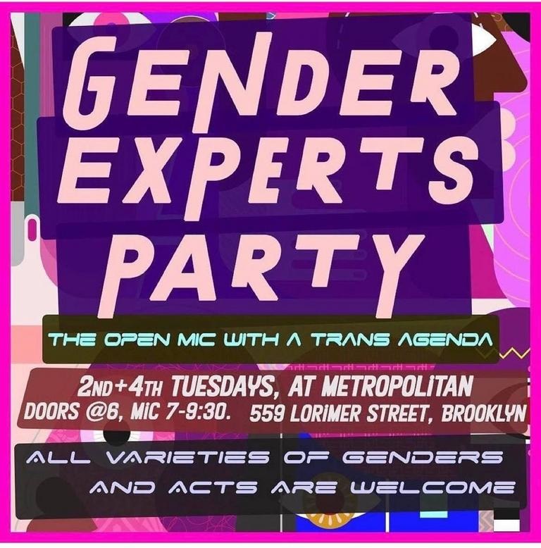 I think people not in the know have a certain expectation about what a “trans and non-binary open mic night” might look or sound like: somber, political, etc. And there are those moments and beats. But mostly from what I’ve seen, Gender Experts really is a party –there’s a lot of fun being had by everyone on stage and in the audience!