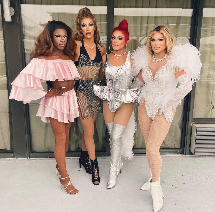 As for a drag family: me and my sisters Buttakup, Lucy Moth and Venus Mystique created an amazing bond and became a small little family who supports each other non-stop! We hang all the time and we help each other with projects, so I definitely consider them my family and my drag family. Also, I have a drag sister: Miss Crystal Envy, who is currently Miss Paradise 2022. Me and her have gotten really close the last year, and help each other and love each other like crazy!