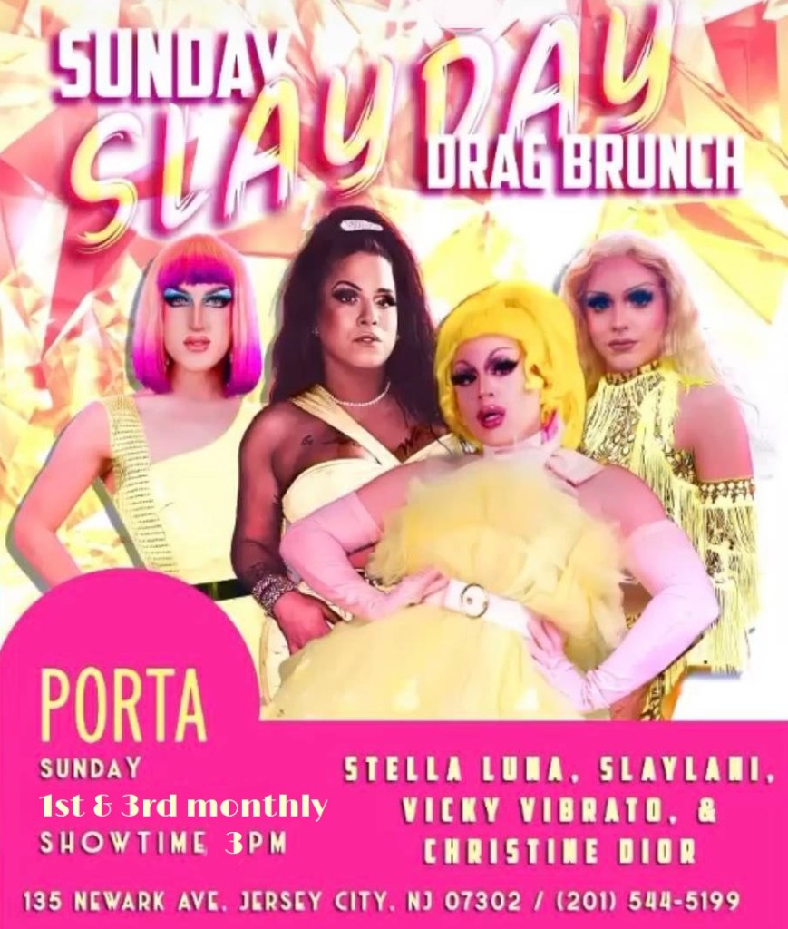 I’m also a resident cast member at Porta Jersey City for “Sunday Slayday Drag Brunch” every first and third Sunday of the month at 3pm! And odds are if you’re out somewhere in Hell’s Kitchen, you might see me. Thank you!