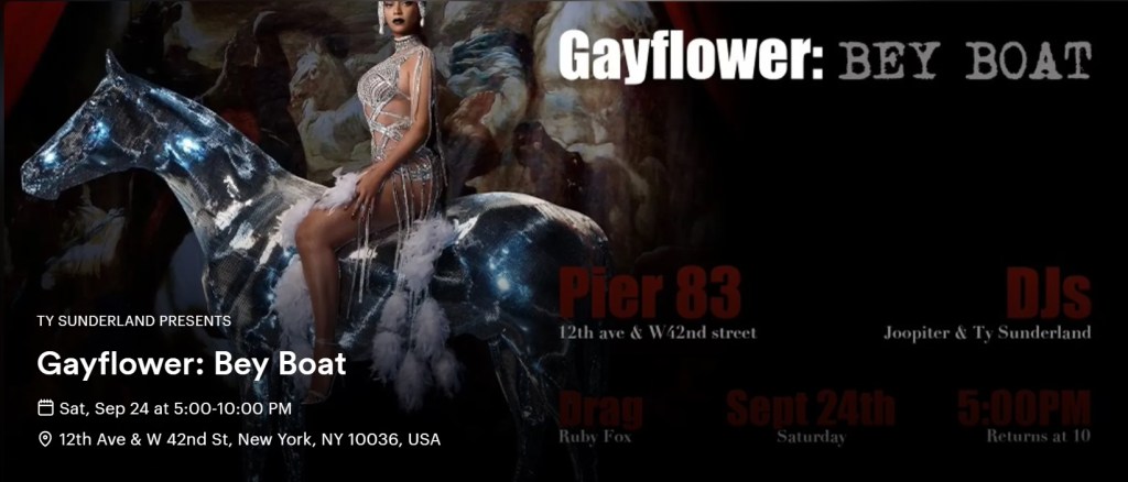 You’ve got some fun stuff coming up! You’ll be on board the Circle Line this weekend for Ty Sunderland’s “Gayflower,” for one thing. Have you done boat parties before?