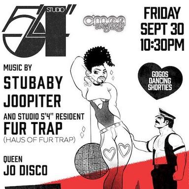 On Friday the 30th, you’ll be serving “shorty disco” at Cmon Everybody via Studio 5’4″ with resident DJ Fur Trap and fellow guest DJ Stubaby, plus queen Jo Disco! That should be everything!