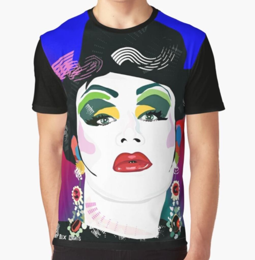 I designed one, and I also sell one of a kind one-offs. My friend Alex Nights designed a whole line. What Alex did was make me look fabulous in cartoon form, and he sent them to me to be sure I liked them… and I have yet to see one I didn’t like. My friend Franklin Fuentes designed a few as well, and I love them. It’s such an honor when any artist wants to use one of my looks or one of my photos on a tee or on merchandise. Many of my newest looks (dresses or performance attire) have been designed by Suze GX in Boston. It makes a girl feel loved.