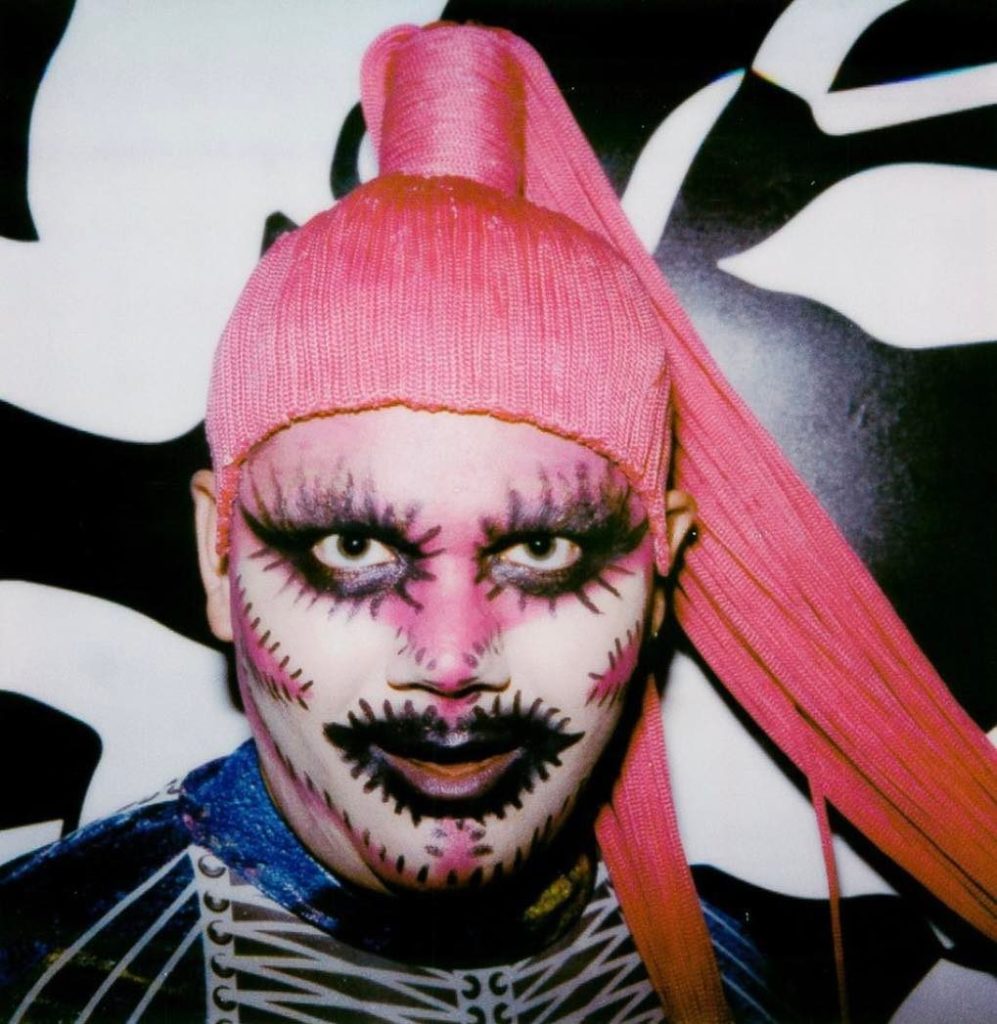 Looks-wise, I love embracing weirdness: dark, campy conceptual outfits mostly made out of unconventional materials. Even the wigs! I make wigs out of rope, plastic bananas, duct tape balls, gauze… mostly not hair!