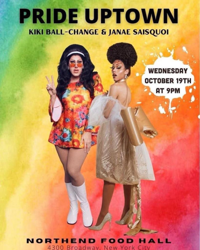 Come see your uptown queens, Kiki Ball-Change and Janae SaisQuoi perform at the Northend Food Hall, located at 183rd & B’way in Washington Heights!