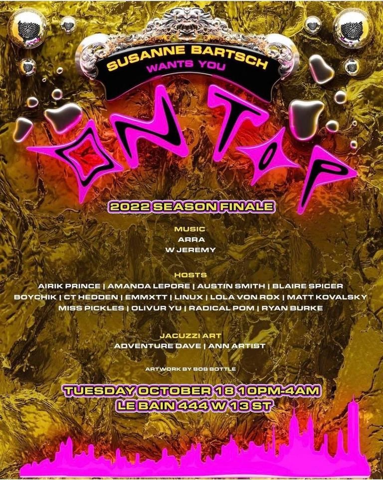 MONDAY (10.17.2022) Your daily guide to New York City nightlife programming. UPTOWN / BRONX SUITE: Standup comedy (8pm) TOOLBOX: Bingo feat. Phoebe Jeebies (9pm) IDENTITY: Industry night (10pm) HELL’S KITCHEN BOXERS HK: Poker with Butch Cordora (6pm) HARDWARE: “Broadway Mondays” feat. VJ OhRicky playing musical clips (6pm);Jacklynn Hyde & Holly Box-Springs (9pm) VERS: Pianist Andre Catrini (9pm) THIRST: RalphyContinueContinue reading “Monday (10.17.2022)”